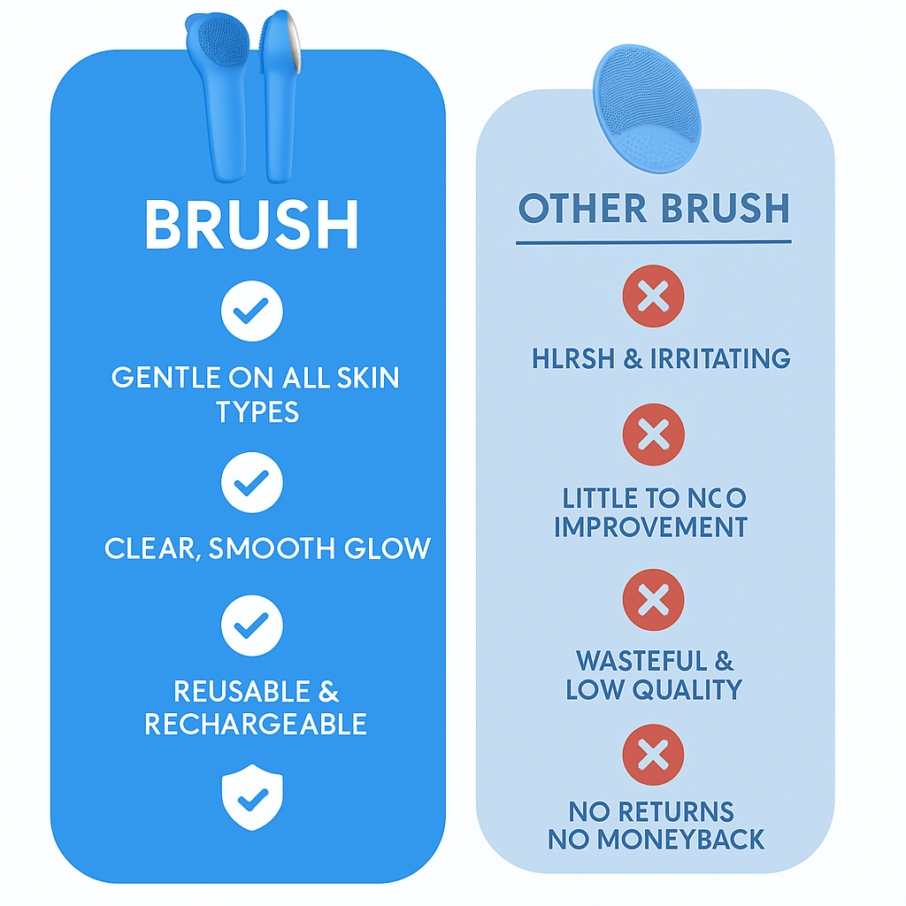 With OUR ultra-soft silicone brush and deep - cleanse technology you'll achieve radiant, glassy skin in minutes, gently ,thoroughly, and without irritation. use it wet to dry, ant time your skin needs a refresh.